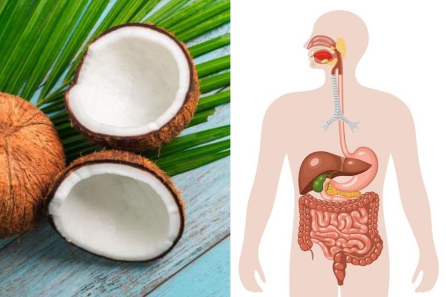 Có thể nói ăn dừa rất tốt cho hệ tiêu hóa là nhờ chất xơ trong thực phẩm này không hòa tan và dùng làm thức ăn cho vi khuẩn trong đường ruột. Từ đó các bệnh như: Táo bón, bệnh trĩ, loét đại tràng cũng được hạn chế tối đa. Bạn thường thấy mọi người khuyên người yếu bụng ăn cùi dừa là vì thế.