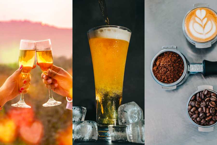 Caffeine và rượu đều có thể làm tăng nồng độ axit trong dạ dày, gây cảm giác buồn nôn. Chúng cũng có thể gây ra chứng khó tiêu, các tình trạng đường tiêu hoá khác như bệnh trào ngược đường tiêu hoá (GRED).