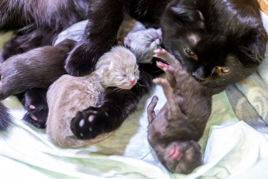 - Chuẩn bị các thiết bị sưởi ấm và giấy thấm khăn thấm nếu mèo đẻ vào các thời kỳ lạnh trong năm.