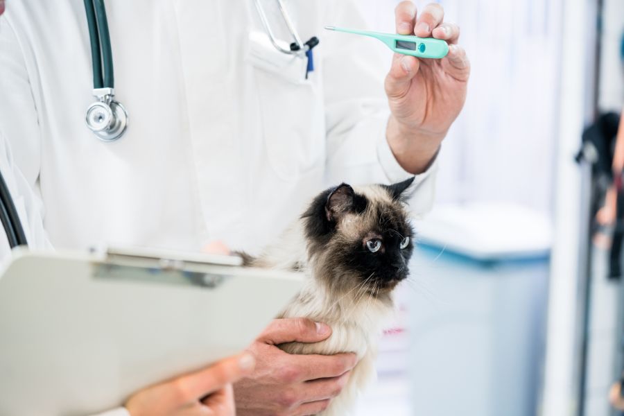 Trong 24 giờ trước khi đẻ, nhiệt độ mèo sẽ giảm xuống từ 1 đến 2 độ, còn 36,9 – 37,9 độ. Trong 2 giờ trước khi mèo sinh, nhiệt độ trực tràng giảm liền 2 độ. Sự giảm nhiệt có thể được nhận biết thông qua sự tiếp xúc với mèo và không ảnh hưởng gì xấu với sức khỏe của nó.