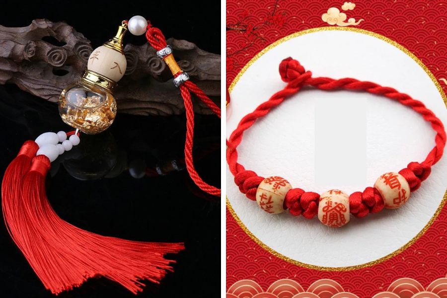 Dây may mắn – đặc biệt là màu đỏ (thuộc hành Hỏa) và màu vàng (thuộc hành Thổ) được xem là vật dẫn năng lượng cát tường.