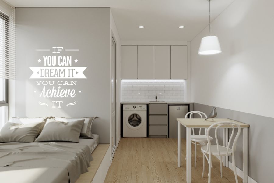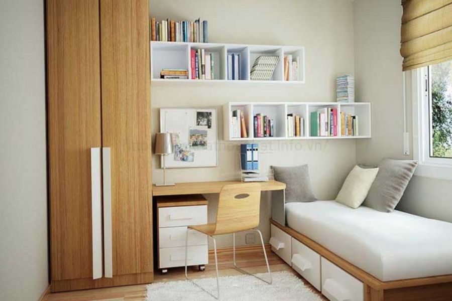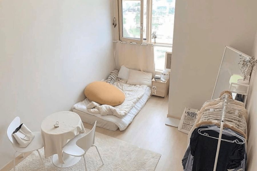 Bạn nên dùng những món đồ nội thất nhỏ gọn, đa chức năng để tiết kiệm diện tích. Ngoài ra, các gam màu tươi sáng như trắng, kem, be,… cũng có tác dụng tạo hiệu ứng thị giác rộng rãi hơn cho căn phòng.