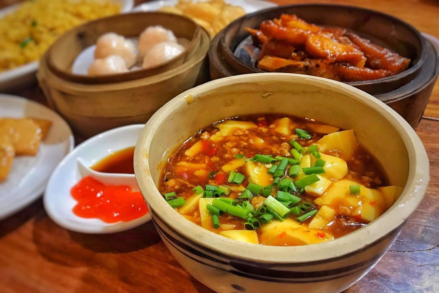 - Đậu phụ tứ xuyên: món ăn này rất bắt cơm, vì vậy nên gọi thêm cơm ăn kèm. Món ăn gồm đậu hũ non, nấu cùng thịt heo băm, cà, sả và sốt tứ xuyên.