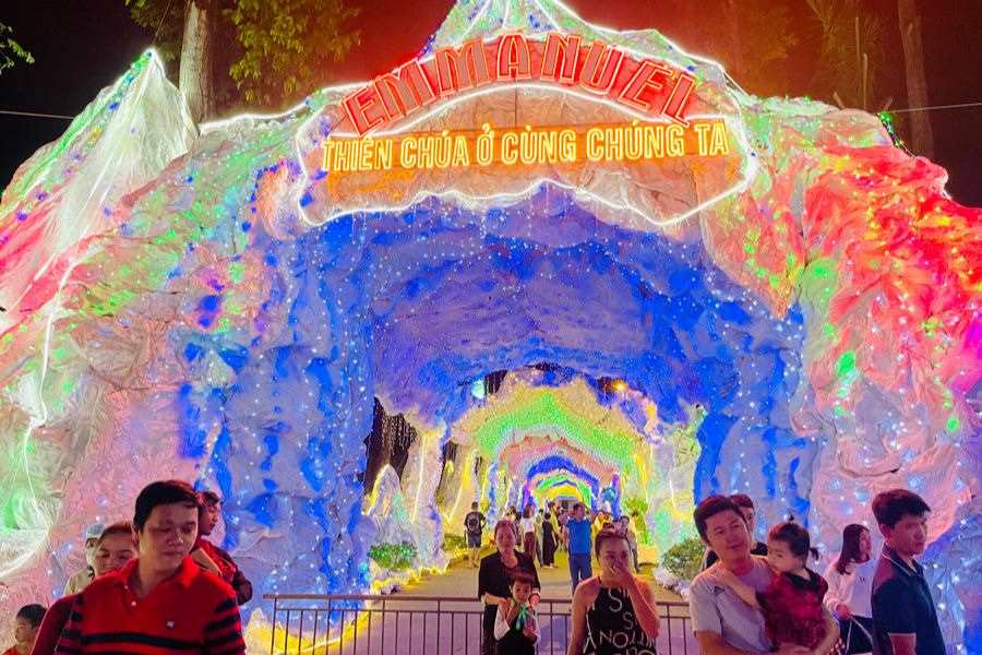 Mỗi dịp Giáng Sinh, các nhà thờ xóm đạo lại được trang hoàng lộng lẫy với hoa, đèn và các tiểu cảnh đẹp mắt. Không khí Giáng Sinh rộn ràng, vui tươi bao trùm khắp khu vực.