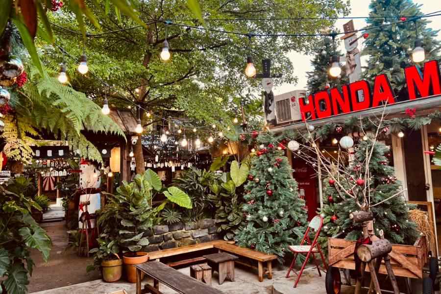 Honda Cafe trong dịp Noel đến gần, quán đã tái hiện một ngôi làng cổ tích Nhật Bản với những ngôi nhà nhỏ xinh, những con đường lát đá, những cây cầu gỗ,… Không gian quán được trang trí rất tỉ mỉ, mang đậm chất cổ điển Nhật Bản ngập tràn không khí tiết trời mùa đông.