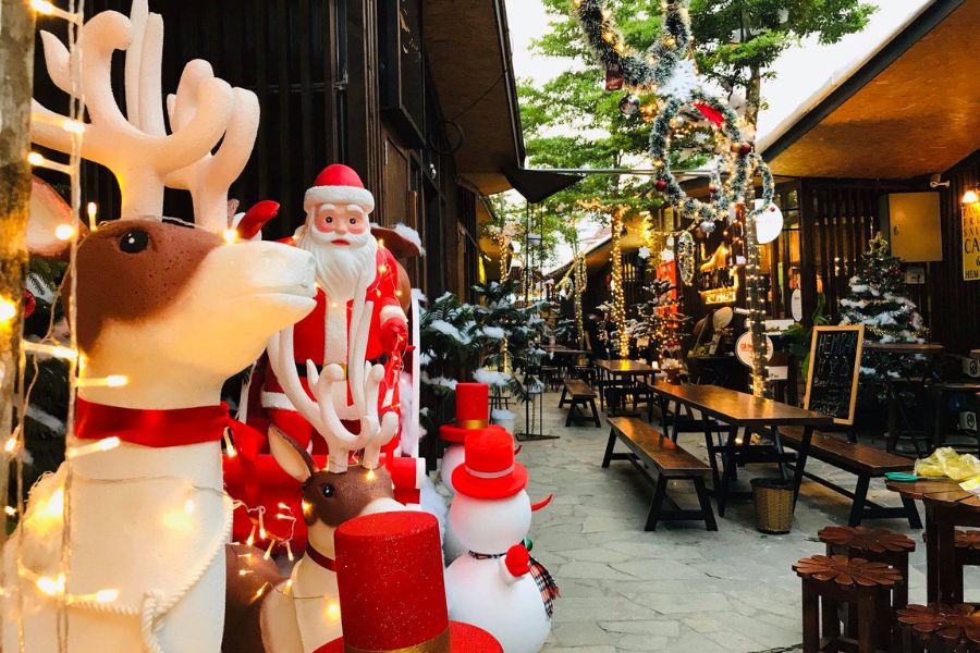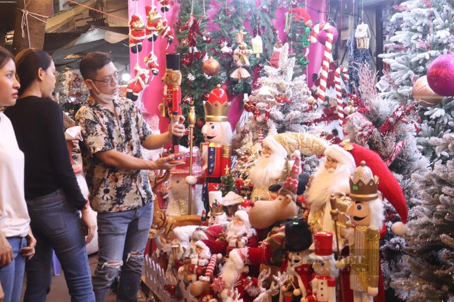 Các cửa hàng trưng bày đầy đủ các vật dụng trang trí như cây thông nhựa, người tuyết, mô hình xốp trang trí, vòng nguyệt quế với nhiều kích thước khác nhau. Điều này thu hút rất nhiều bạn trẻ đến thăm, chụp ảnh và tận hưởng không khí lễ hội tại đây.