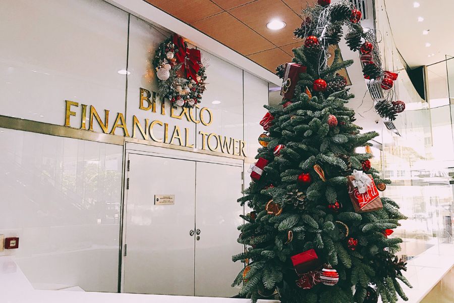 Tòa nhà Bitexco là một trong những công trình nổi bật ở Sài Gòn và thu hút đông đảo những bạn trẻ đến chụp ảnh, sống ảo trong dịp lễ Giáng Sinh. Tại đây, các bạn có thể chiêm ngưỡng không khí sôi động và rực rỡ của ngày lễ Noel khi nhìn từ trên cao.