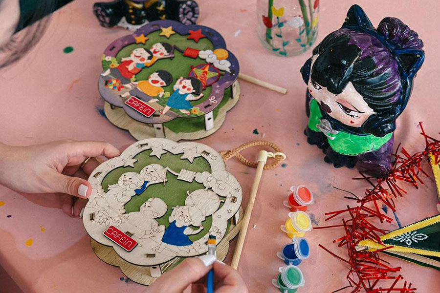Cafein là quán cà phê sở hữu nhiều góc check-in Trung thu với các concept cực xinh tại quận Tân Phú. Đặc biệt, bên cạnh chụp ảnh, bạn còn có thể tham gia workshop tô và trang trí lồng đèn ngay tại quán cực kỳ thú vị và ý nghĩa.