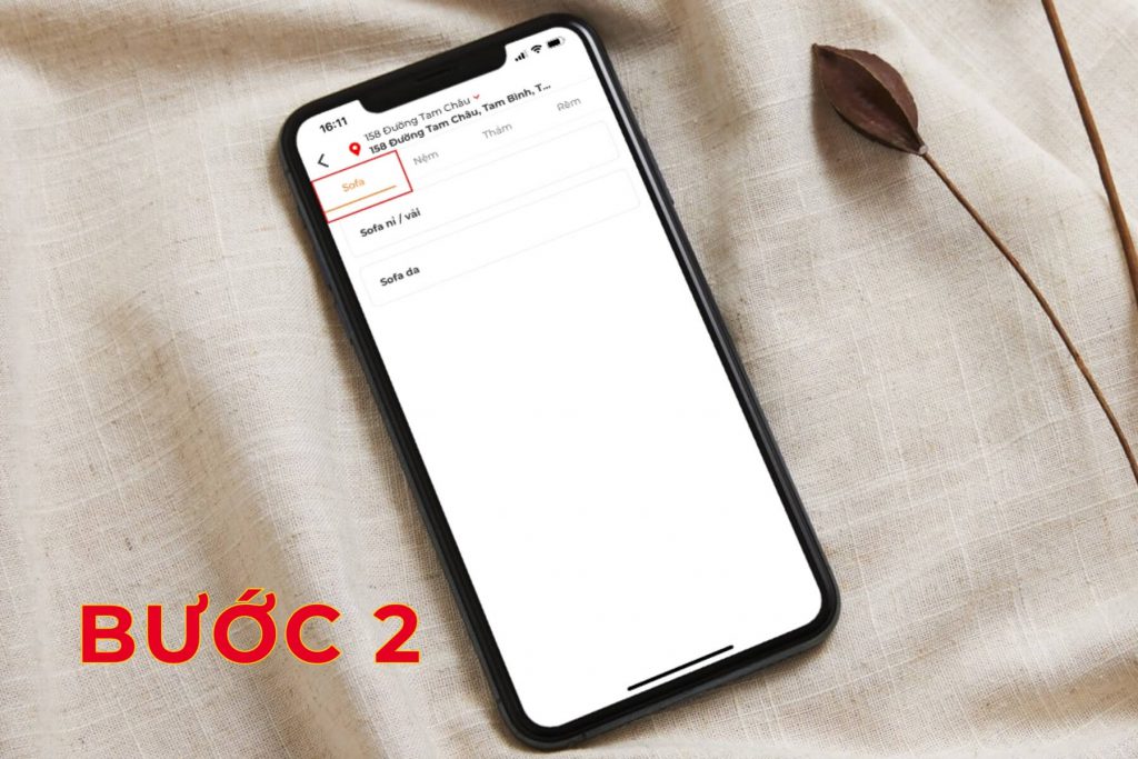 Bước 2: Thêm địa chỉ và chọn tab “Sofa” trong 4 tab: Sofa, nệm, thảm và rèm.