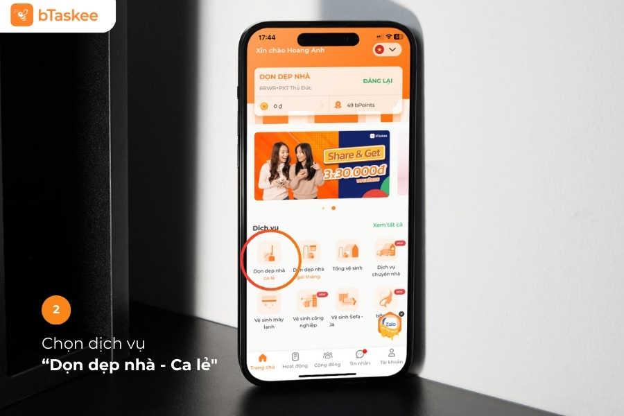 Bước 2: Chọn dịch vụ “Dọn dẹp nhà – Ca lẻ” trên màn hình chính.