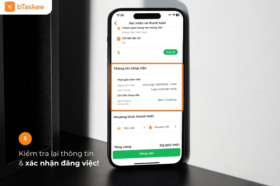 - Kiểm tra thông tin và xác nhận đăng việc.