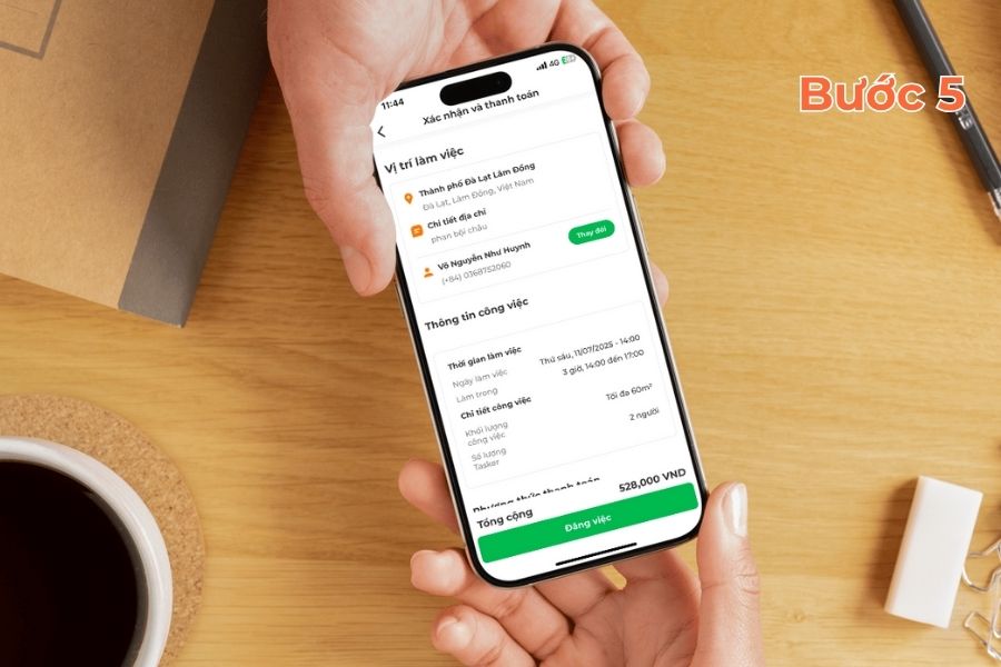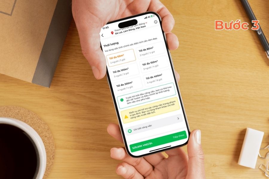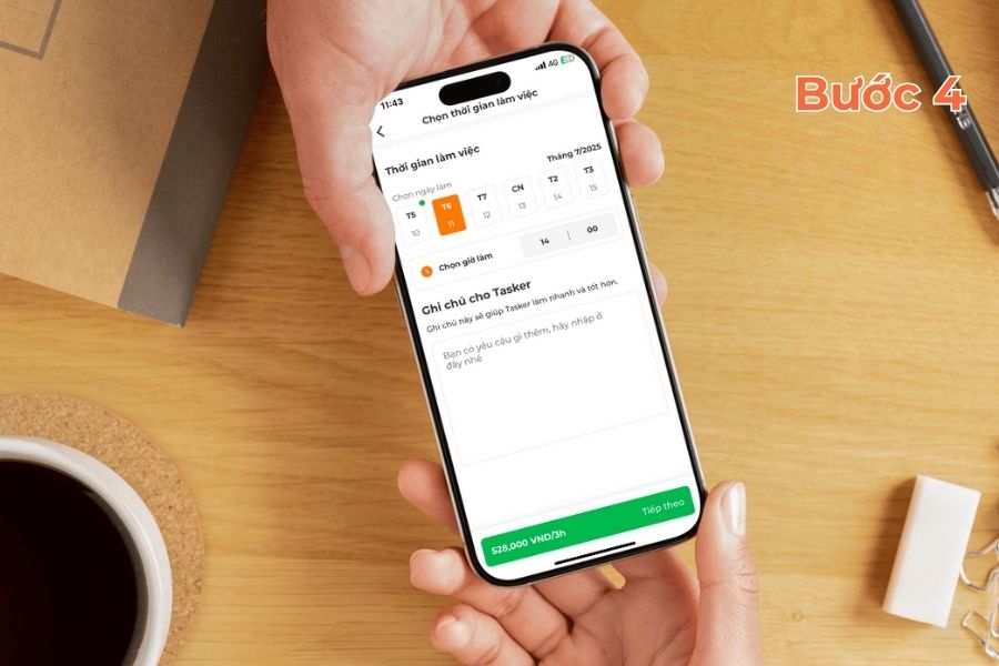 - Lưu ý: nên đặt lịch trước 1-2 ngày để đảm bảo có Tasker