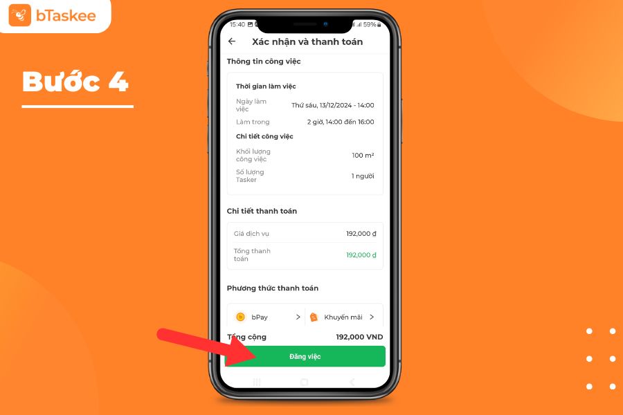 Bước 4: Xác nhận thông tin, phương thức thanh toán và chọn “Đăng việc”.
