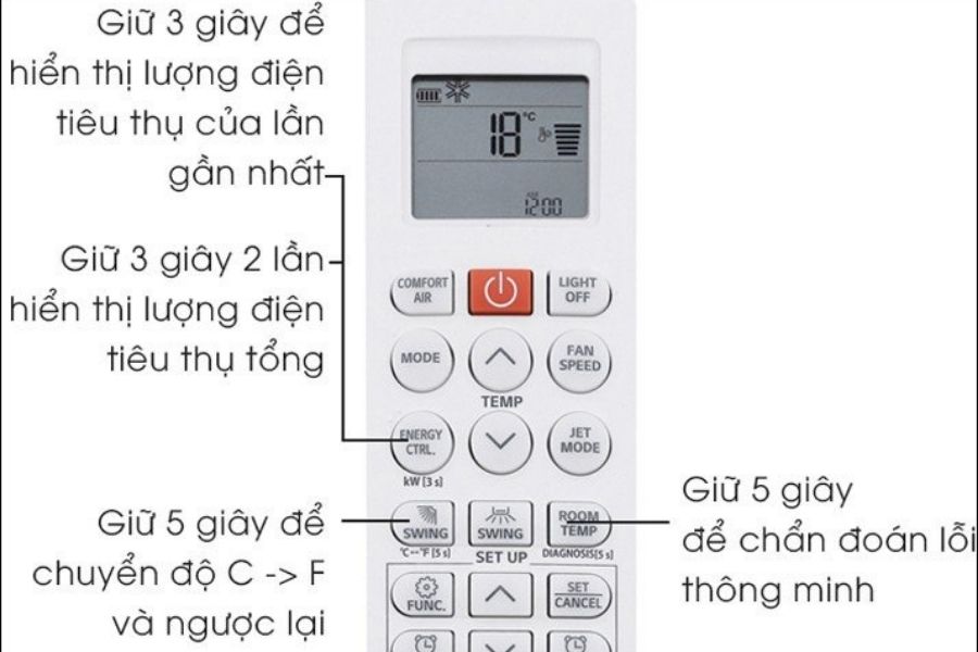 - JET MODE: Bật chế độ làm lạnh nhanh của máy điều hòa.