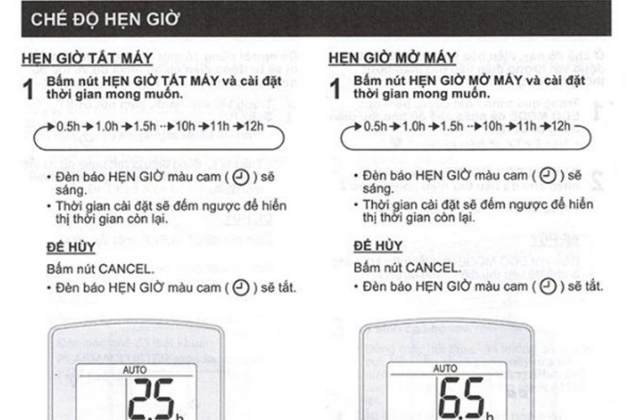 - Hẹn giờ tắt máy: Khi cài đặt hẹn giờ tắt, máy tự động điều chỉnh nhiệt độ cài đặt để tránh làm lạnh quá cao khi bạn đang ngủ. Sau 60 phút cài đặt, nhiệt độ sẽ tăng lên 1oC so với nhiệt độ ban đầu
