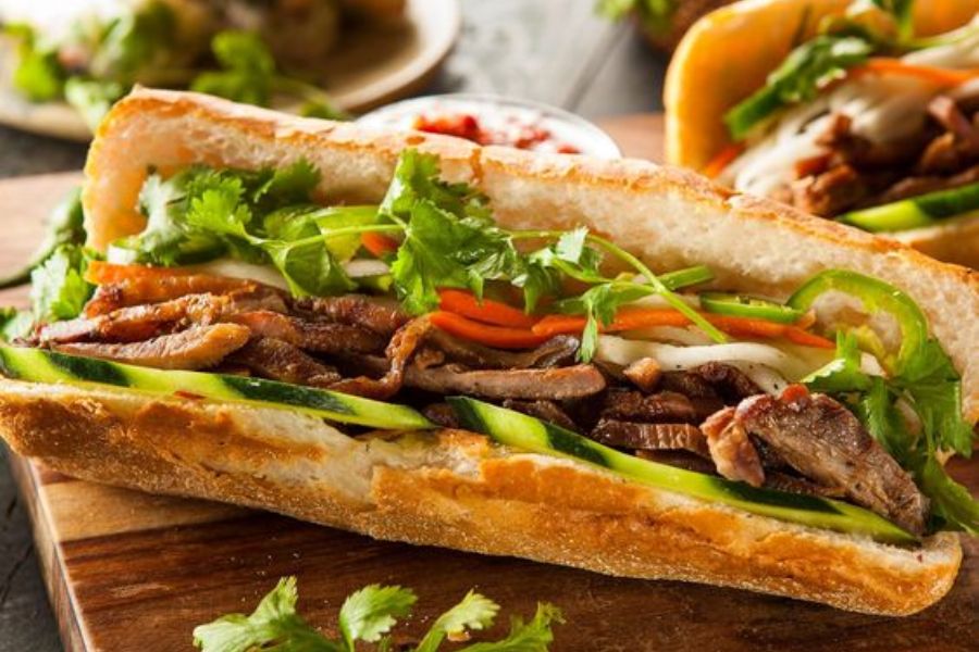 Bánh mì là thức ăn nhanh nổi tiếng tại Việt Nam và được xếp vào danh sách những món ăn đường phố ngon nhất thế giới. Món ăn này mang hương vị thơm ngon của lớp vỏ bánh giòn rụm cùng phần nhân thịt bên trong, phù hợp với những người không có thời gian dùng bữa.