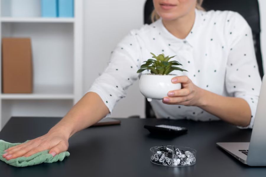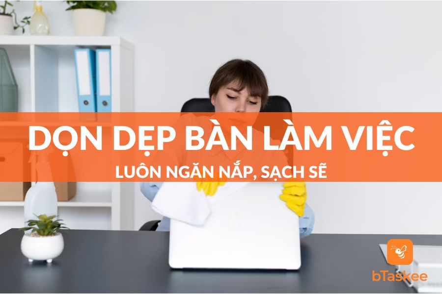 Khi dọn dẹp bàn làm việc ngăn nắp, gọn gàng, căn phòng của bạn sẽ được trông sạch sẽ, thoáng mát giúp tập trung và nâng cao tinh thần làm việc. bTaskee chia sẻ bí quyết dọn dẹp nhanh chóng, tạo không gian tươi mới, đầy năng lượng tích cực cho nơi làm việc.