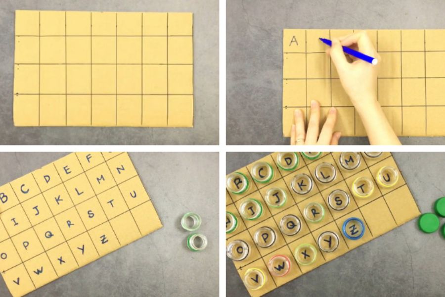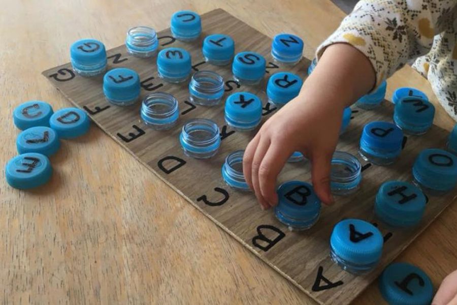 Những bảng chữ cái giúp bé học tập, nhận biết chữ viết nhanh hơn. Thay vì phải mua một bảng chữ ABC mới, bạn hoàn toàn có thể tái chế từ nắp chai nhựa.