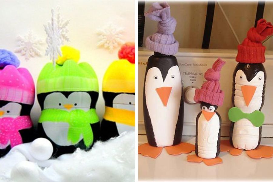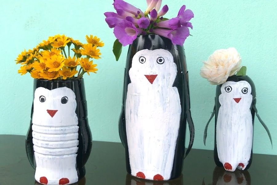 Hướng dẫn tái chế chai nhựa thành đồ chơi: Những chú chim cánh cụt đáng yêu