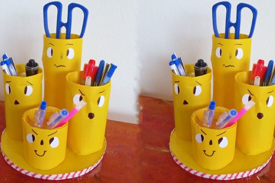 Đồ tái chế từ chai nhựa: hộp bút để bàn nhiều ngăn