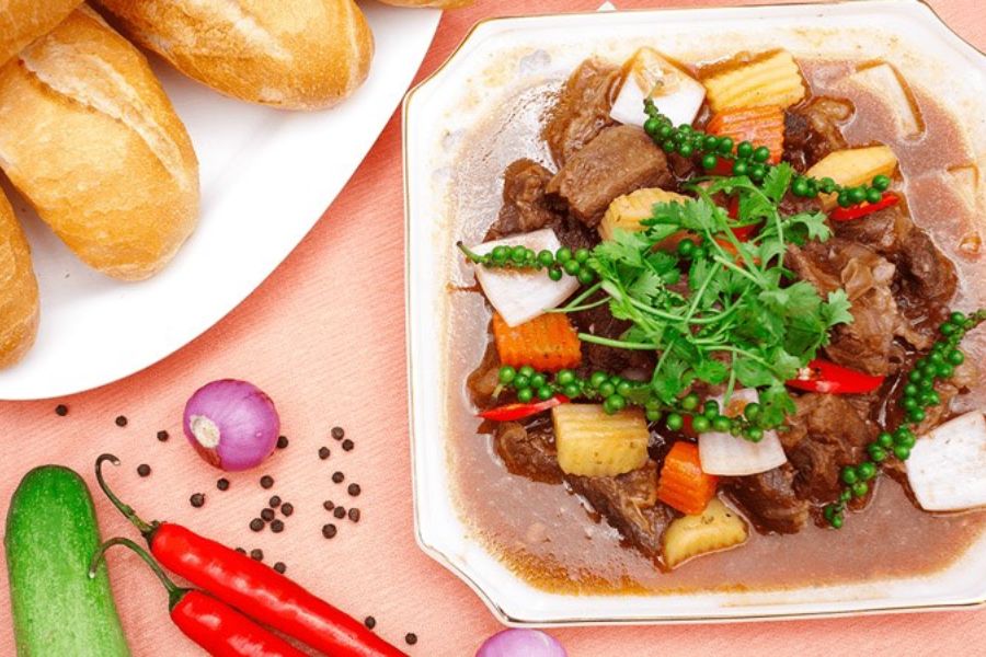 Món ăn tiếp theo mà bạn nên thử mỗi khi không biết đuôi bò làm gì ngon đó là đuôi bò kho và bánh mì. Các thành phần trong món ăn bao gồm đuôi bò, cà rốt, khoai tây, hành lá,…