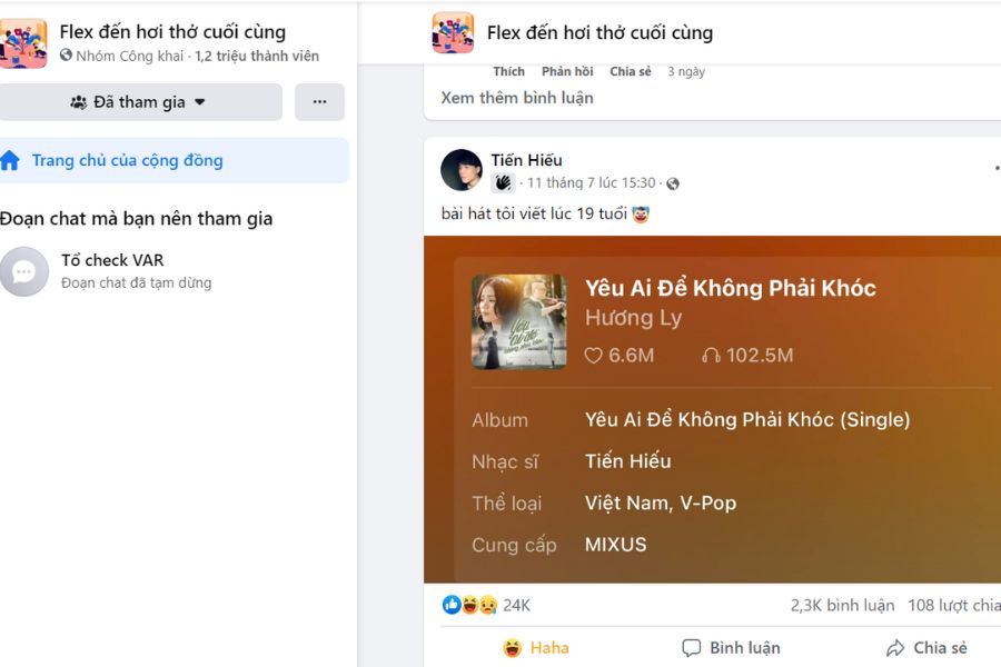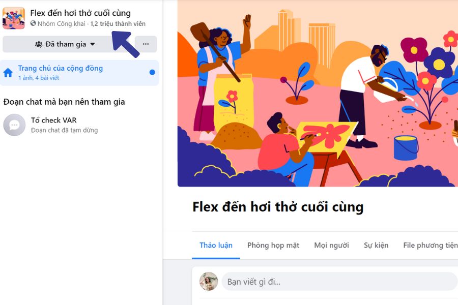Trước tiên bạn cần có 1 tài khoản facebook. Sau đó trên thanh tìm kiếm gõ dòng chữ “Flex đến hơi thở cuối cùng”. Ấn yêu cầu tham gia và đợi xét duyệt từ quản trị viên.
