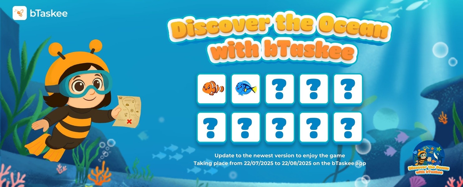 Mở ứng dụng bTaskee và tham gia từ 22/07/2025 để trở thành nhà thám hiểm đại dương tài ba. Một hành trình kỳ thú dưới lòng đại dương đang chờ bạn chinh phục!
