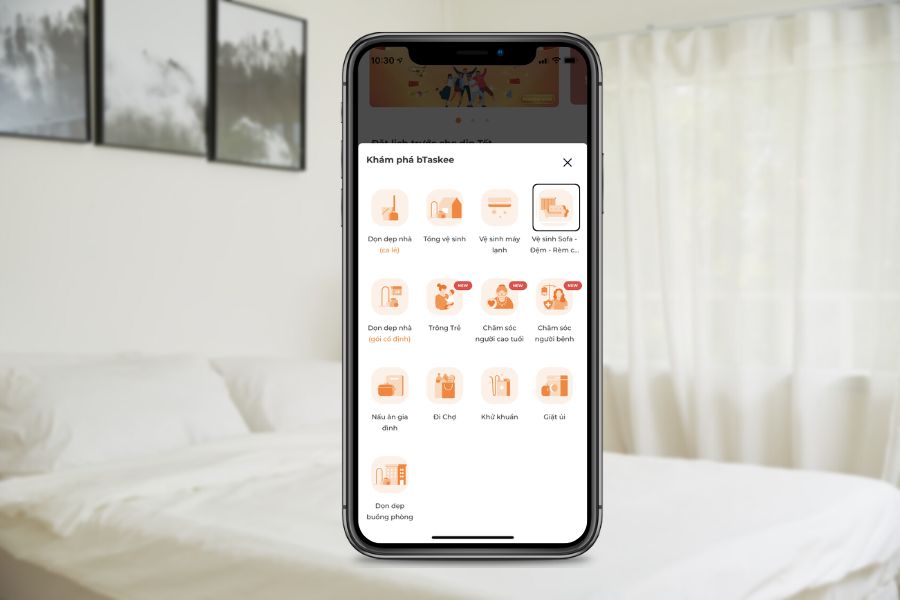 Hướng dẫn cách đặt dịch vụ vệ sinh đệm trên ứng dụng bTaskee