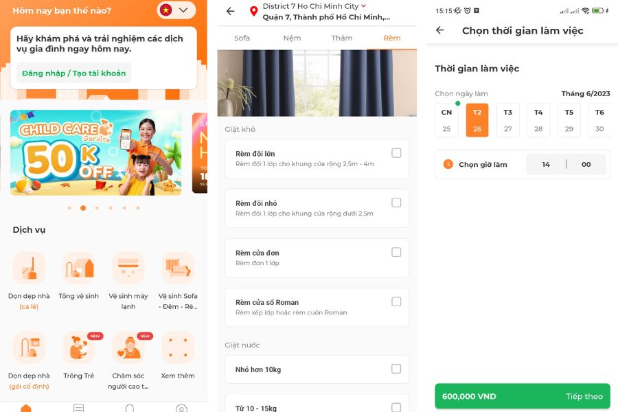 - Tiết kiệm thời gian, công sức: bTaskee là ứng dụng tiện ích cho gia đình với giao diện thân thiện với người dùng. Chỉ với vài thao tác đơn giản trên điện thoại di động, bạn đã có thể đặt dịch vụ giặt màn cửa giá rẻ quận 7 thành công.
