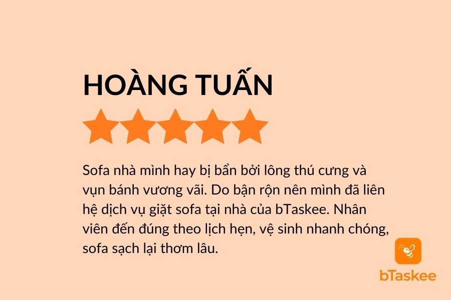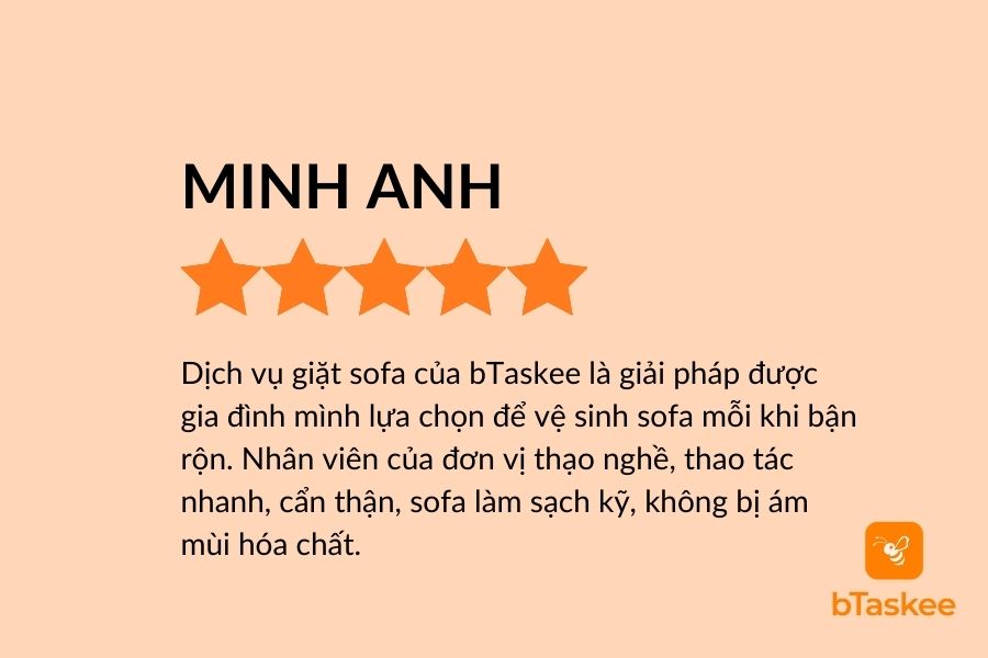Đánh giá của khách hàng về dịch vụ giặt sofa tại nhà Hà Nội của bTaskee