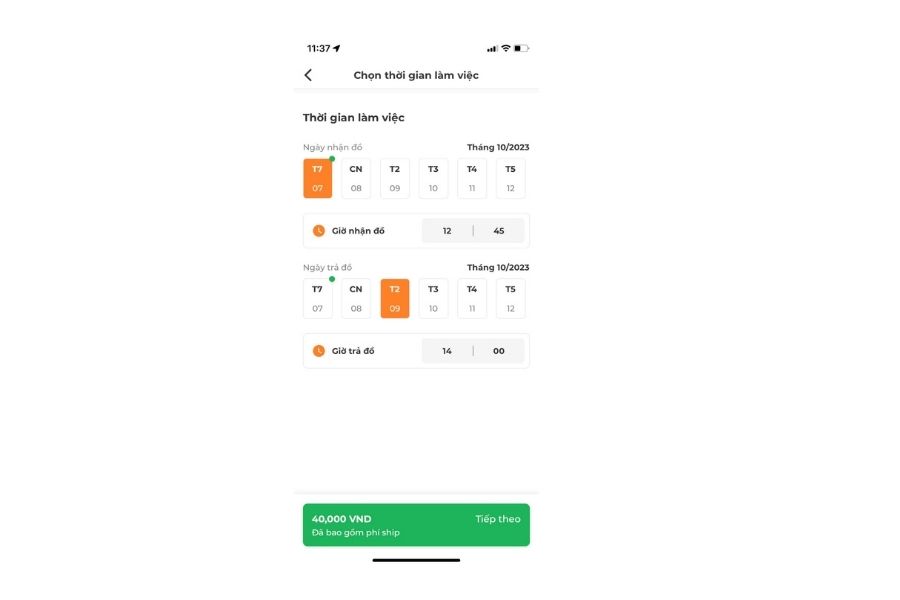 Bước 3: Chọn thời gian: Lúc này bạn hãy ghi cẩn thận thời gian giao và nhận đồ mà bạn mong muốn.