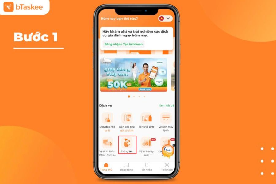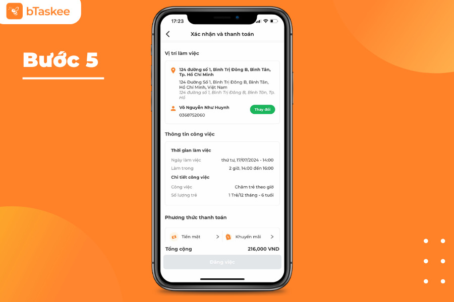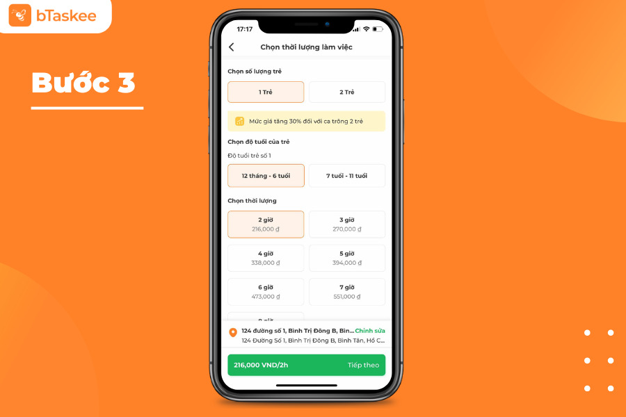 Hướng dẫn 5 bước đặt dịch vụ giữ trẻ tại nhà Bình Tân qua app bTaskee