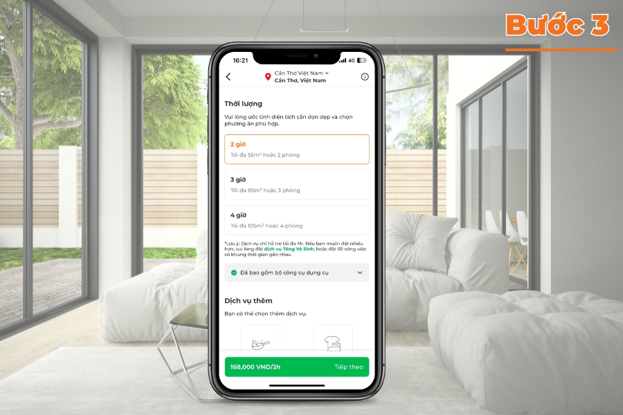 Bước 3: Chọn thời lượng và các tiện ích bổ sung