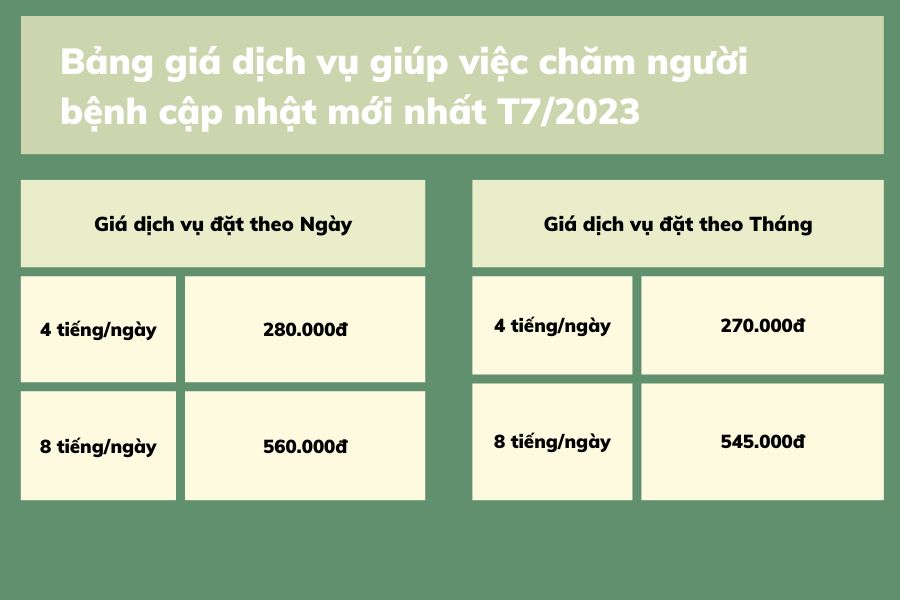 Bảng giá dịch vụ giúp việc chăm người bệnh cập nhật mới nhất T7/2023