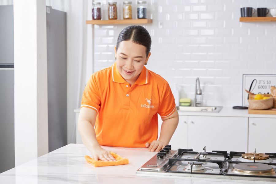 | Dọn nhà bếp | – Rửa sạch chén đĩa và sắp xếp gọn gàng. – Lau bụi và vệ sinh tất cả bề mặt tiếp cận được. – Vệ sinh mặt ngoài của tủ bếp và các thiết bị gia dụng. – Lau sạch các công tắc và tay cầm. – Cọ rửa bếp kỹ càng. – Vệ sinh mặt bàn bếp. – Làm sạch và khử trùng bồn rửa chén. – Thu gom và xử lý rác thải. – Quét dọn và lau sàn bếp. |