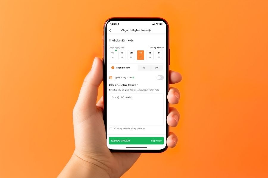 Để tối ưu thời gian làm việc của Tasker trong căn hộ lớn tại Quận 1, bạn cần ghi chú chi tiết khi đặt lịch để Tasker chuẩn bị chu đáo, đồng thời nên cân nhắc đặt gói dịch vụ phù hợp với diện tích thực tế.
