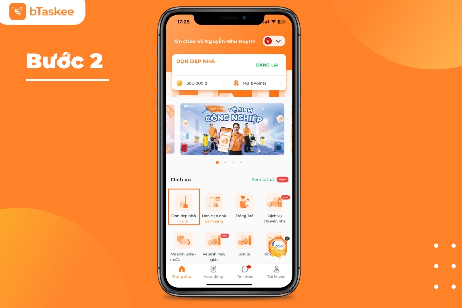 Bước 2: Chọn dịch vụ dọn dẹp nhà