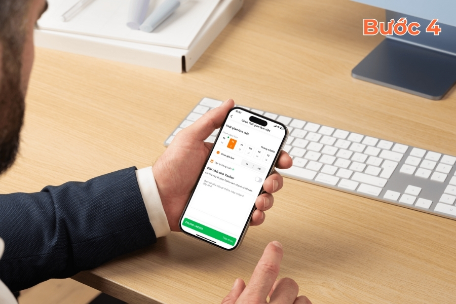 Bước 4: Chọn ngày và giờ nhận việc