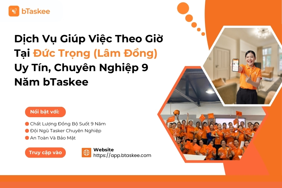 bTaskee mang đến dịch vụ giúp việc nhà theo giờ uy tín, chuyên nghiệp tại Đức Trọng với 9 năm kinh nghiệm trong ngành và hơn 10.000 cộng tác viên trên cả nước. Trong nhịp sống bận rộn tại Đức Trọng, nơi người dân vừa phải chăm lo vườn cà phê, chè và các hoạt động nông nghiệp khác, vừa phải cân bằng công việc gia đình, bTaskee xuất hiện như một giải pháp hoàn hảo.