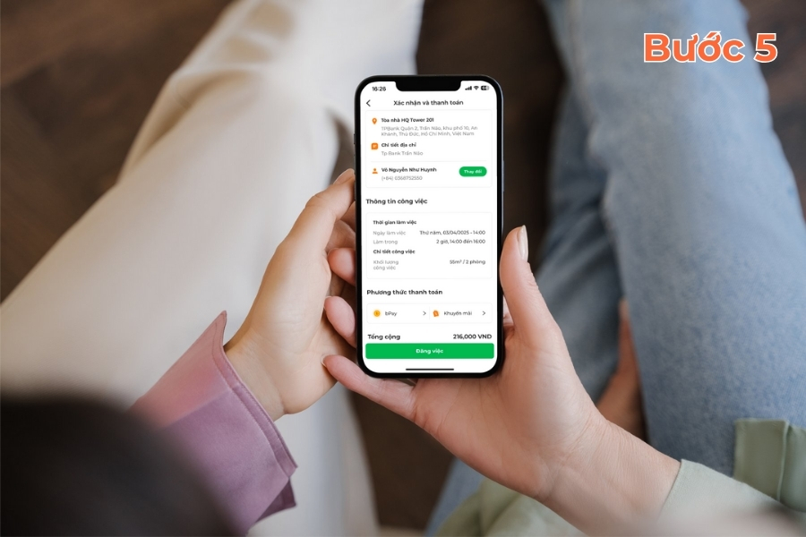 - Kiểm tra lại thông tin đặt lịch: địa chỉ, thời gian, yêu cầu đặc biệt