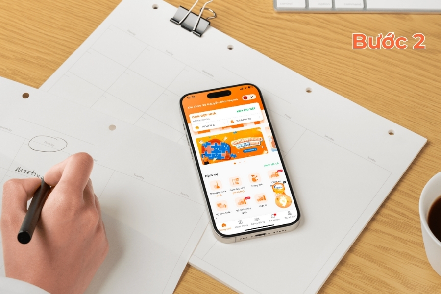 - Chọn dịch vụ “Dọn dẹp nhà” trên màn hình chính