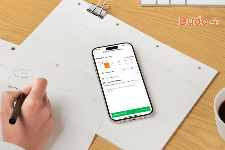 - Chọn ngày và giờ bạn muốn Tasker đến làm việc
