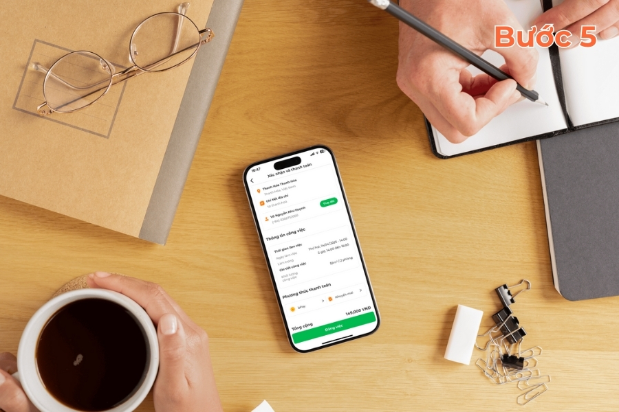 Sau khi hoàn thành công việc, bạn có thể dễ dàng đánh giá chất lượng dịch vụ trực tiếp trên ứng dụng: