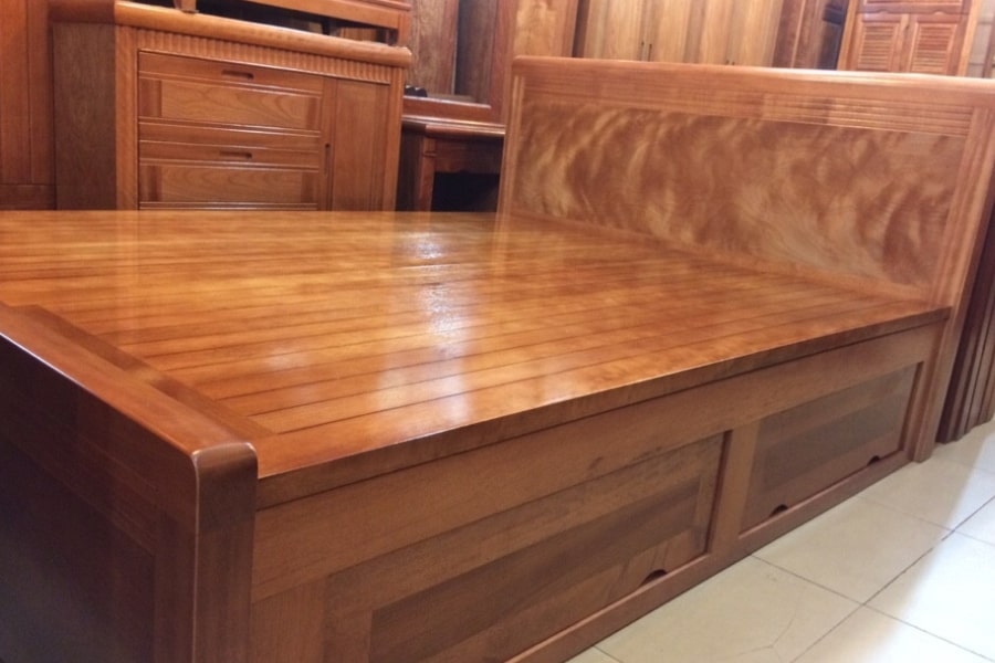 Cũng giống với các nội thất khác thì giường ngủ với nguyên liệu chính là Xoan Đào cũng được nhiều người quan tâm. Sản phẩm này cũng có độ bền bỉ, độ cứng cao. Tuy nhiên giá thành thường cao hơn so với giường làm từ các loại gỗ khác.