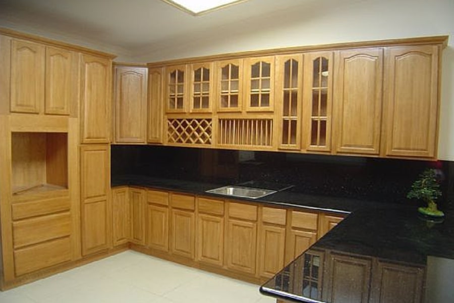 Đây có lẽ là ứng dụng nội thất được nhiều người sử dụng nhất. Nhờ lợi thế của Xoan Đào là có màu sắc tươi tắn nên rất phù hợp khi làm tủ bếp. Với một chiếc tủ bếp làm từ Xoan Đào thì không gian nhà bếp trở nên mới mẻ hơn.