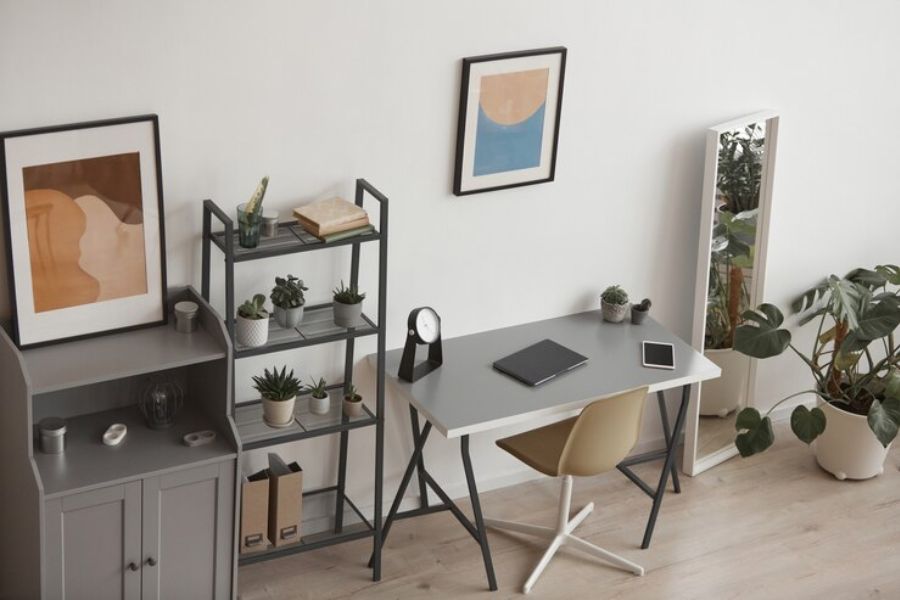Ít vật dụng sẽ giúp bạn dễ dàng kiểm soát không gian hơn. Vì thế chỉ nên chọn những đồ nội thất thật sự cần thiết để trưng dụng ở góc làm việc.