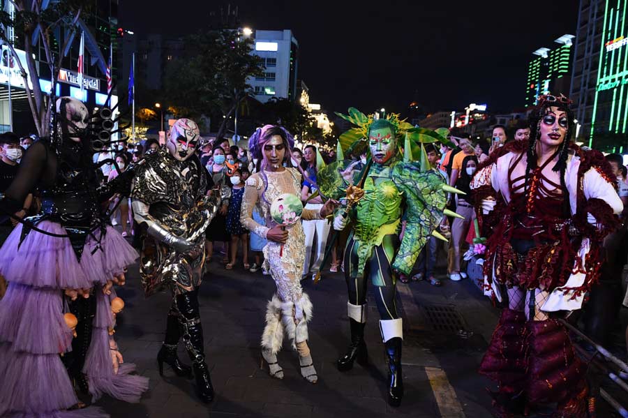 Tại đây, bạn sẽ bắt gặp rất nhiều nhóm bạn trẻ hóa trang thành những nhân vật Halloween nổi tiếng như Joker, Harley Quinn, Valak… Ngoài ra còn có nhiều hoạt động biểu diễn thú vị để bạn có thể vui chơi hết mình, quẩy hết sức.
