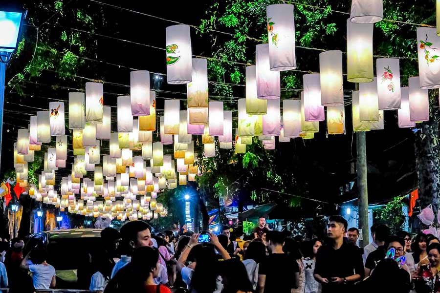 Phố Phùng Hưng không trang trí quá quỷ dị, thay vào đó là không gian lung linh, những ánh đèn lấp lánh, background hoàn hảo để bạn chụp được những bức ảnh đón Halloween triệu like.