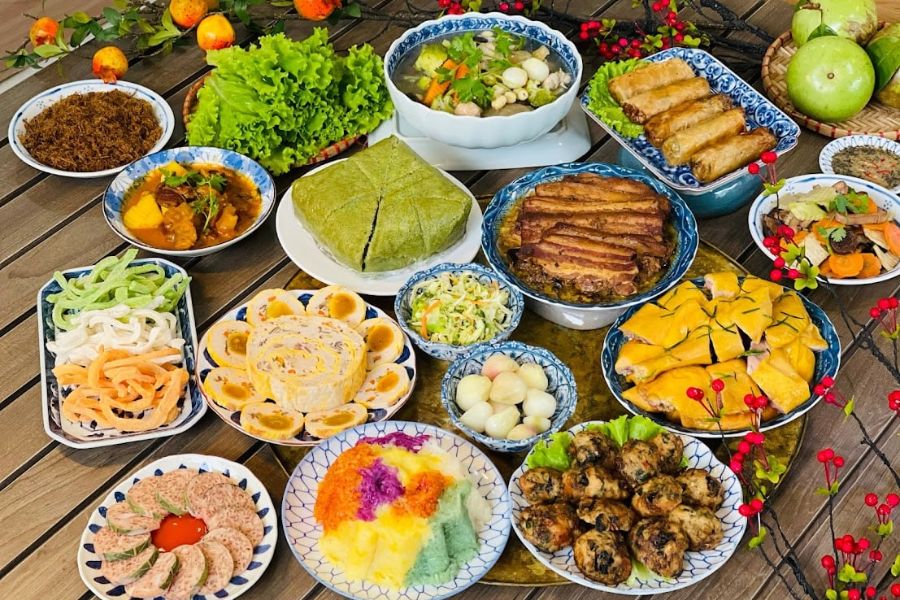 Kết hợp với yếu tố hiện đại như đèn LED rực rỡ, tranh Tết sáng tạo và quà tặng độc đáo, không gian Tết trở nên hài hòa, tươi mới, đậm sắc thái văn hóa và phong cách hiện đại.