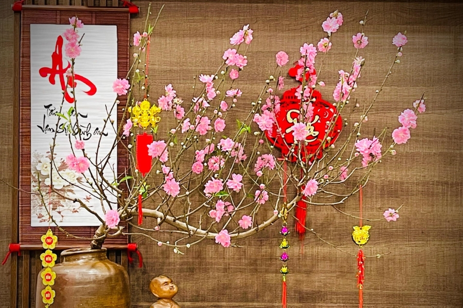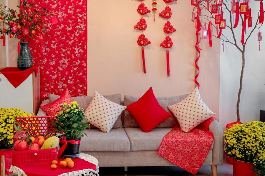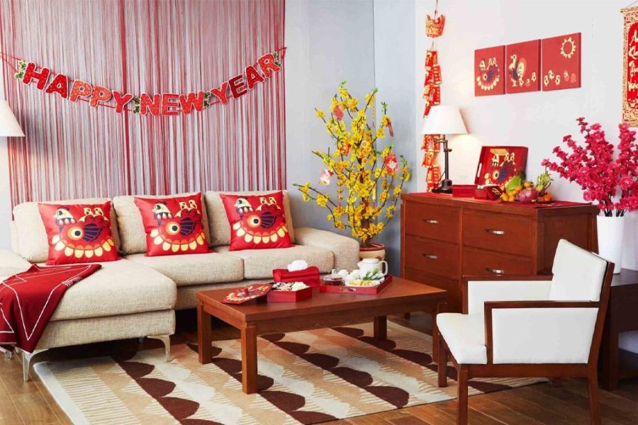 Khi đã dọn dẹp xong, có thể trang trí thêm cho không gian Tết bằng những món đồ như hoa mai, hoa đào, câu đối đỏ,… để tạo không khí ấm áp, trọn vẹn.